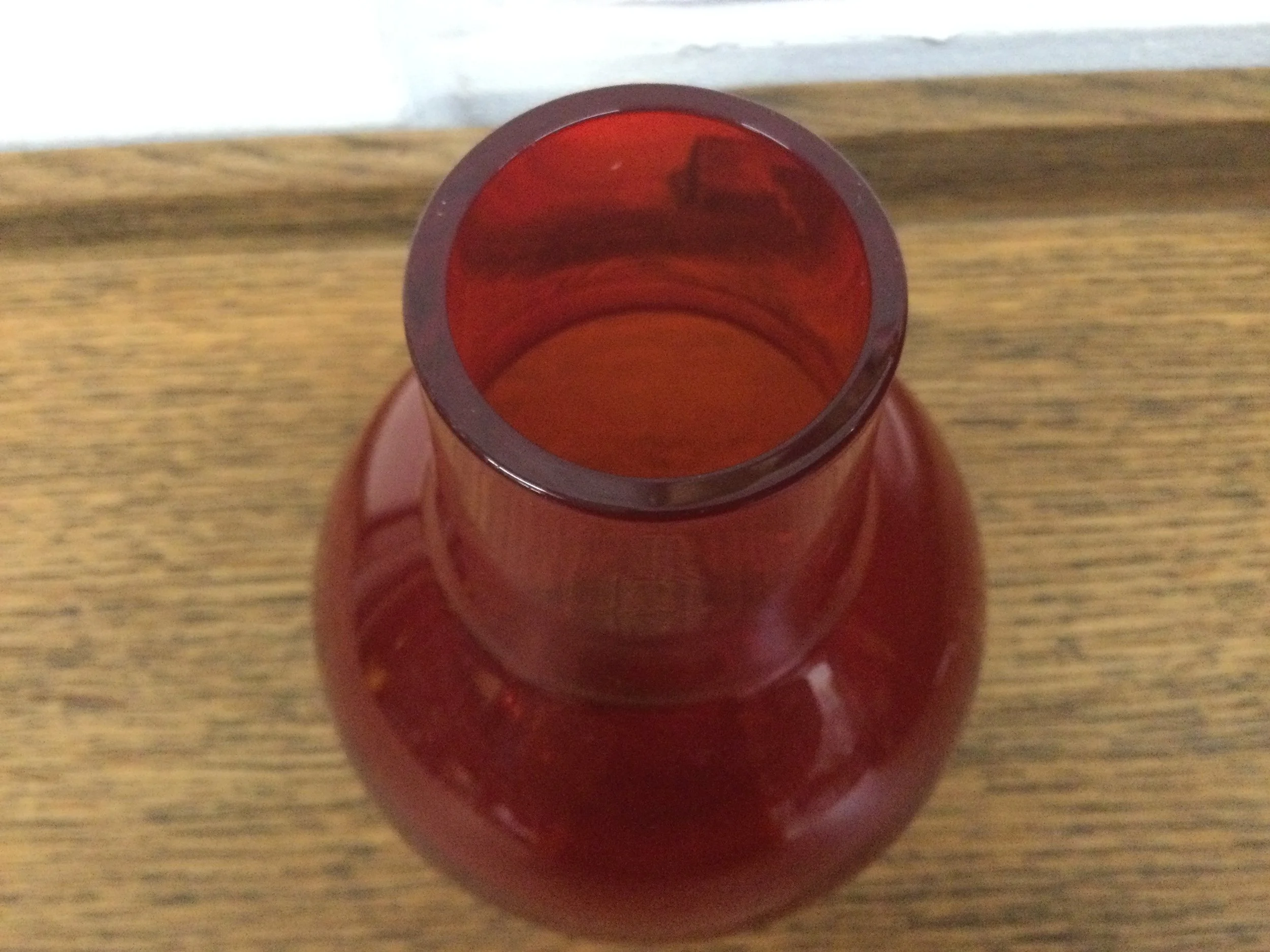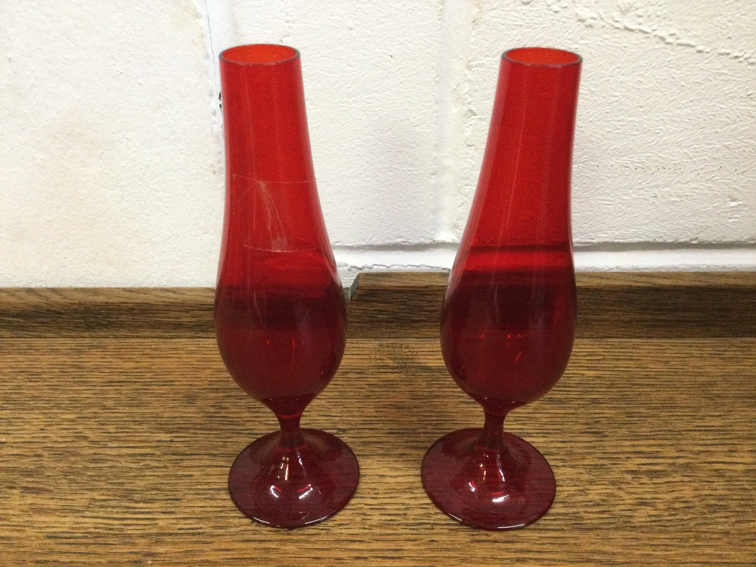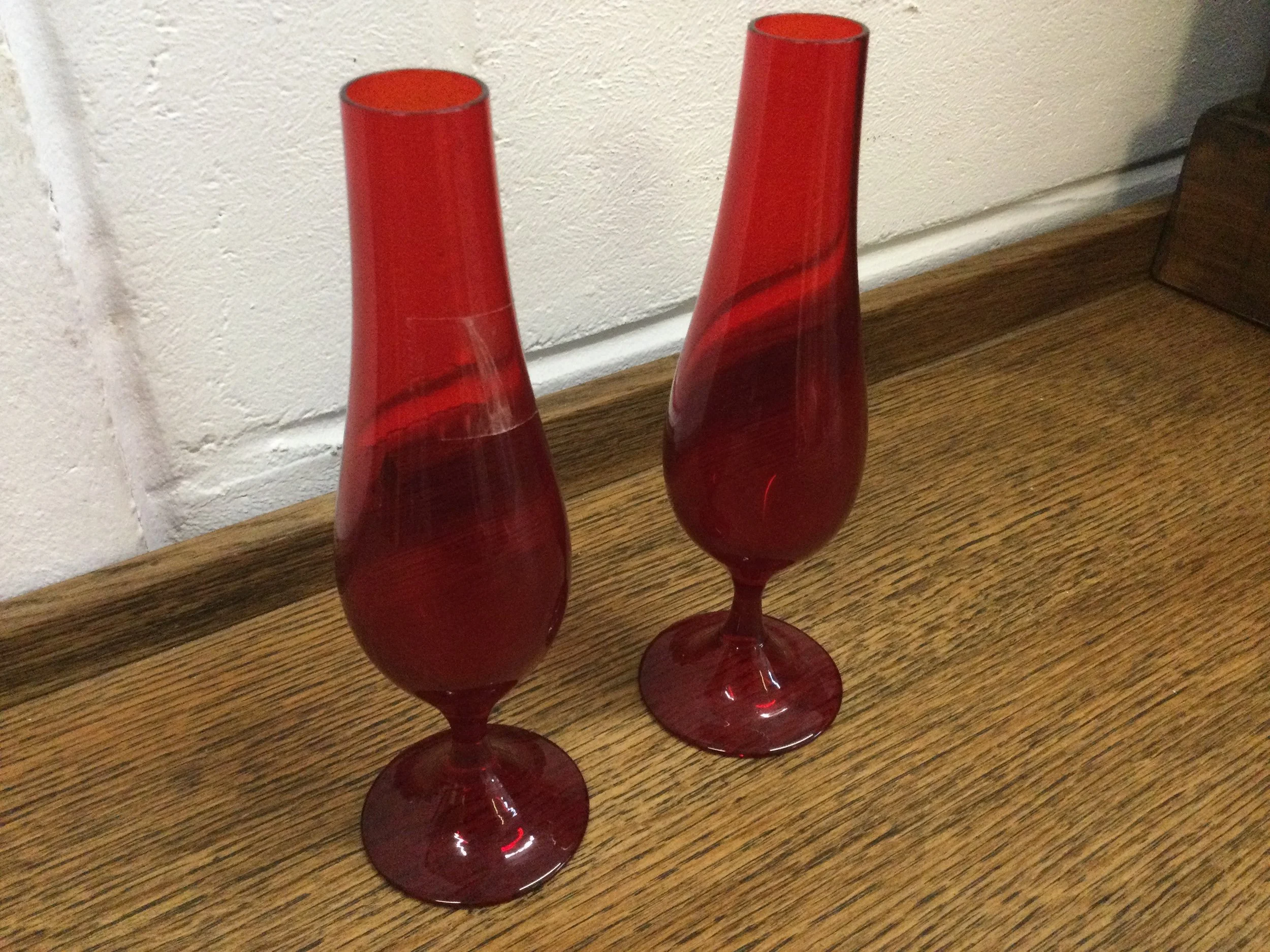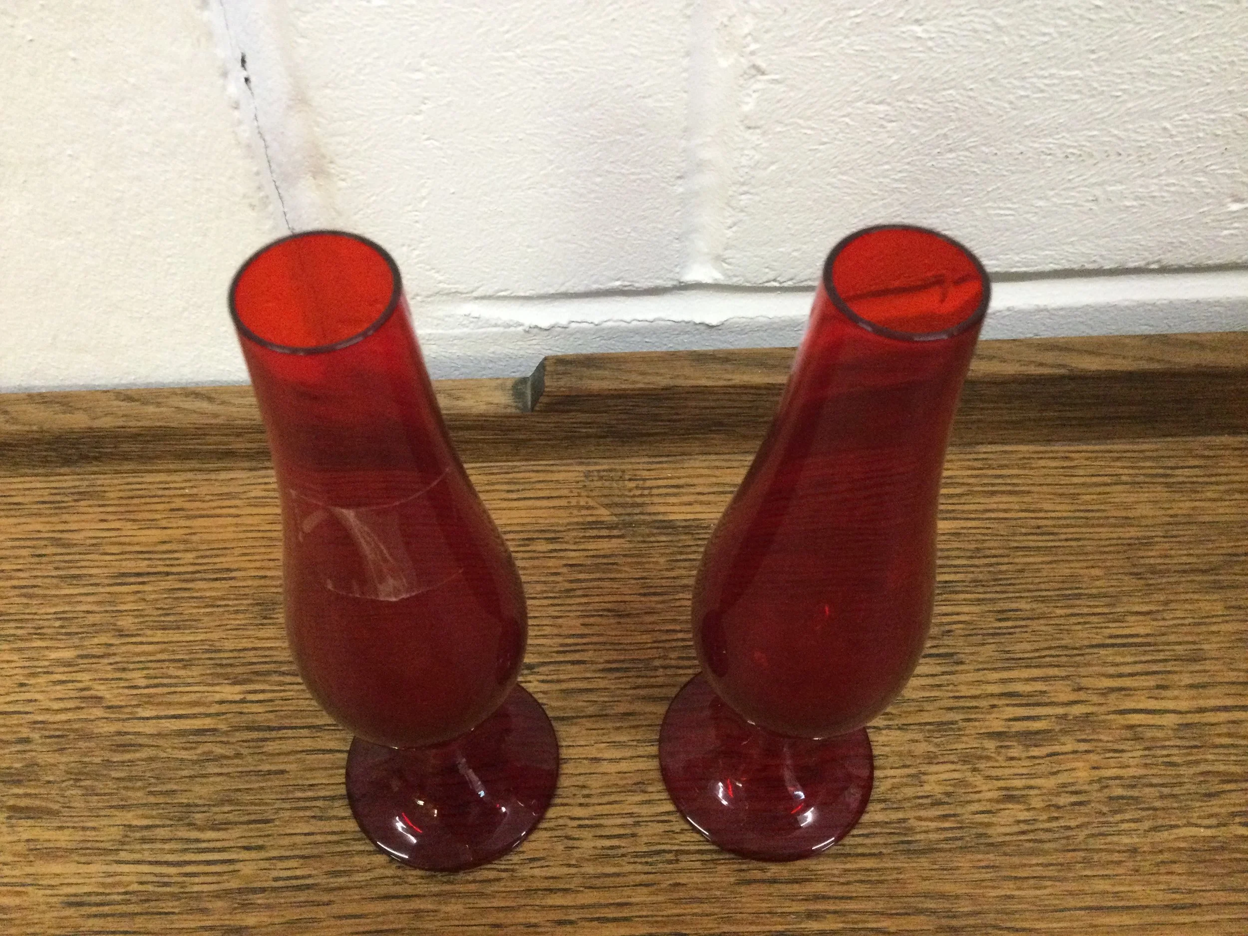 Vintage Pair of Red Glass Table Top Vases IMG_9907.JPG IMG_9908.JPG IMG_9909.JPG