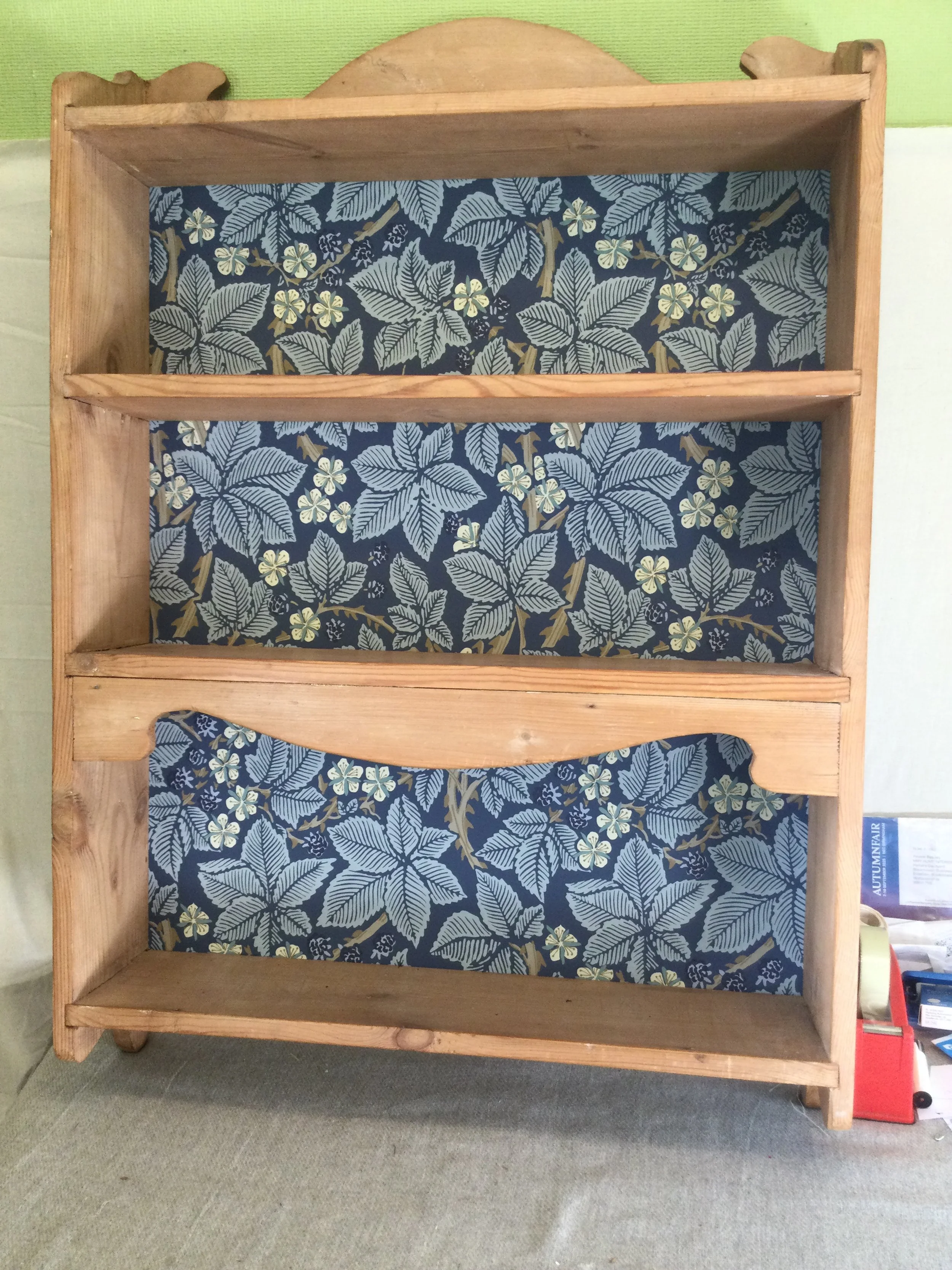 Large Vintage Pine Wall Mounted Shelves with Morris & Co Bramble Wallpaper IMG_0212.JPG IMG_0213.JPG IMG_0214.JPG