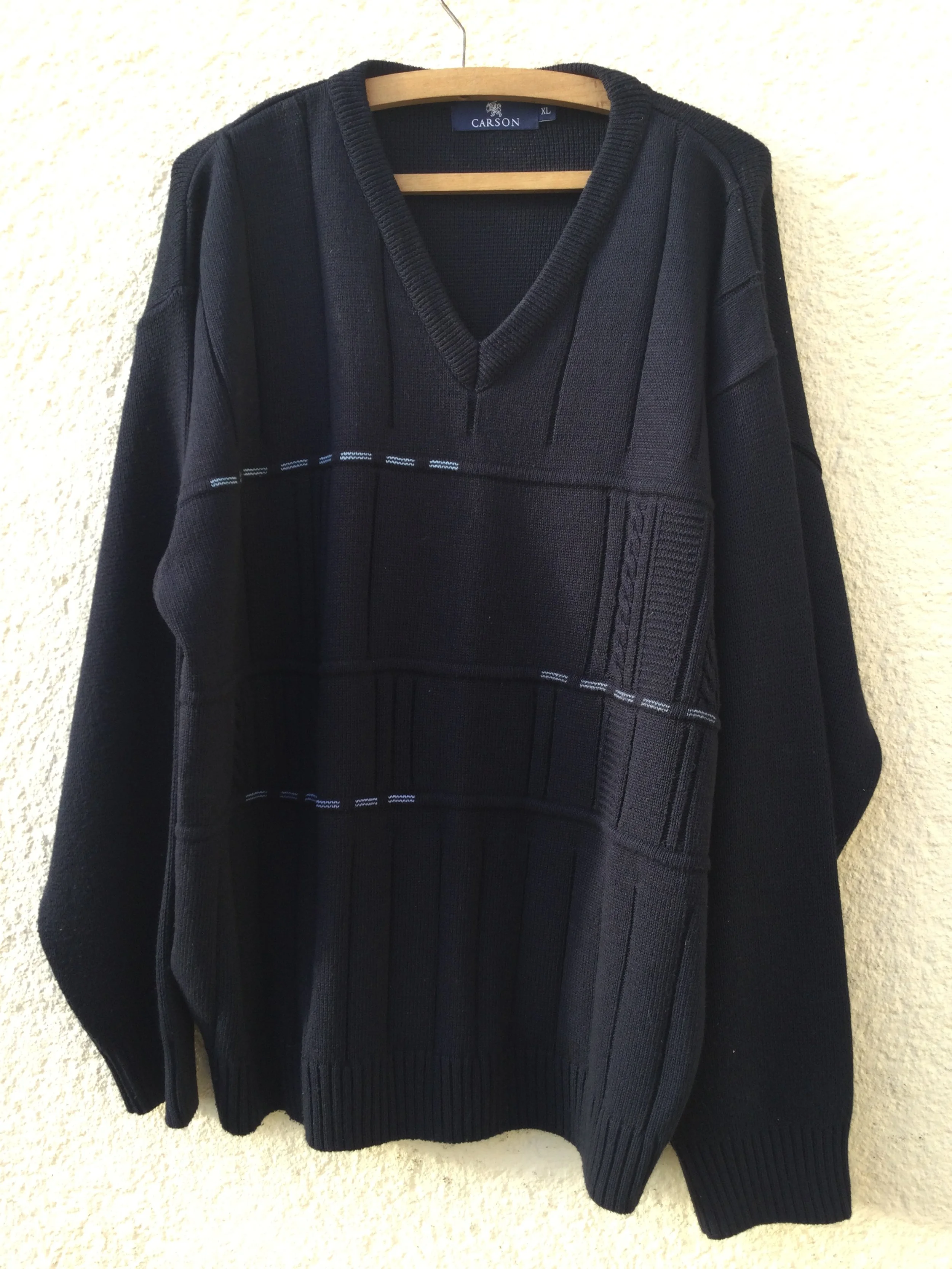 Men's Navy Blue Knitted V Neck Jumper by Carson IMG_0215.JPG IMG_0216.JPG IMG_0217.JPG