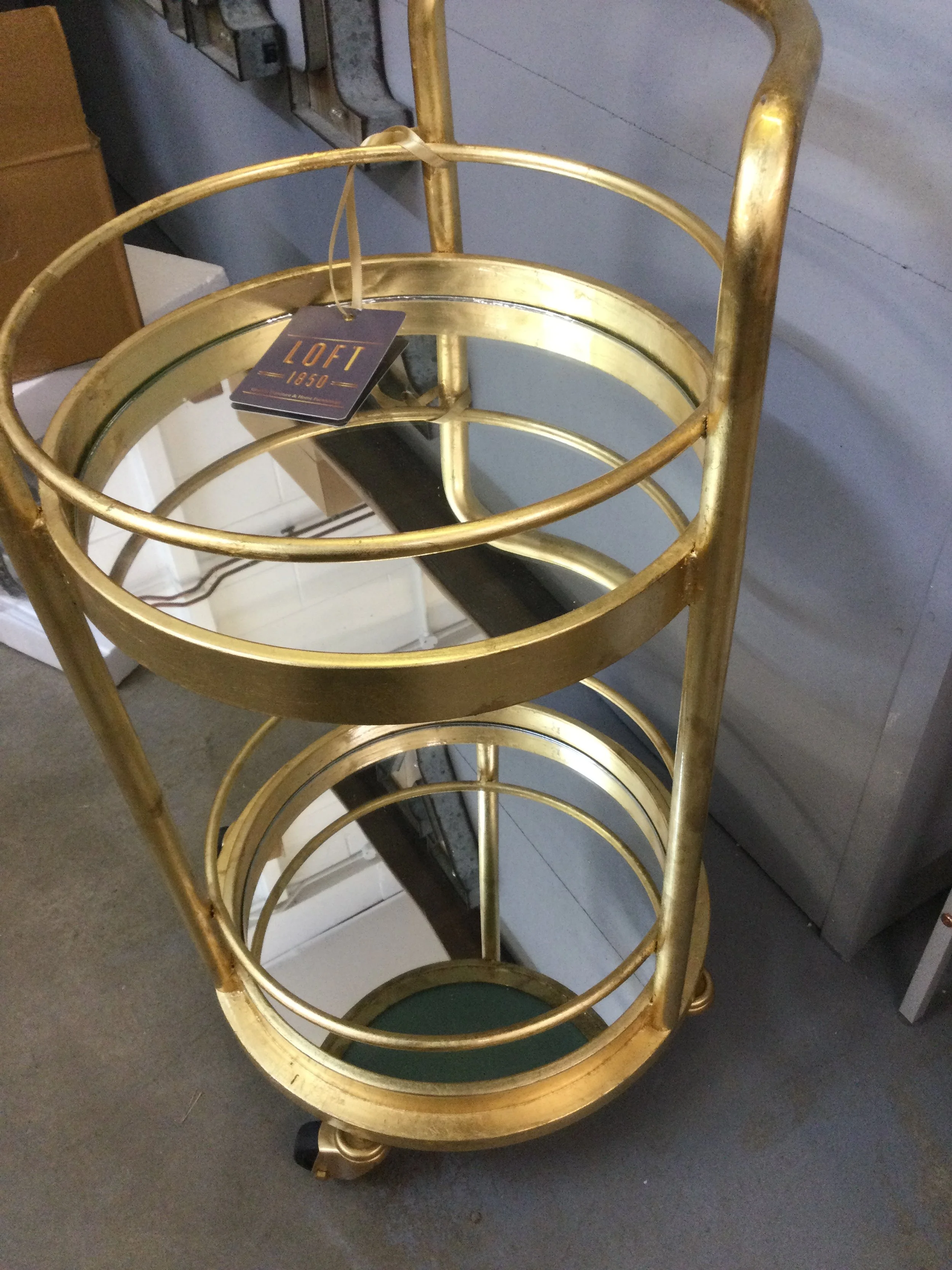 Loft 1850 Gold Metal Distressed Finish Two Tier Drinks Trolley IMG_0354.JPG IMG_0355.JPG IMG_0356.JPG