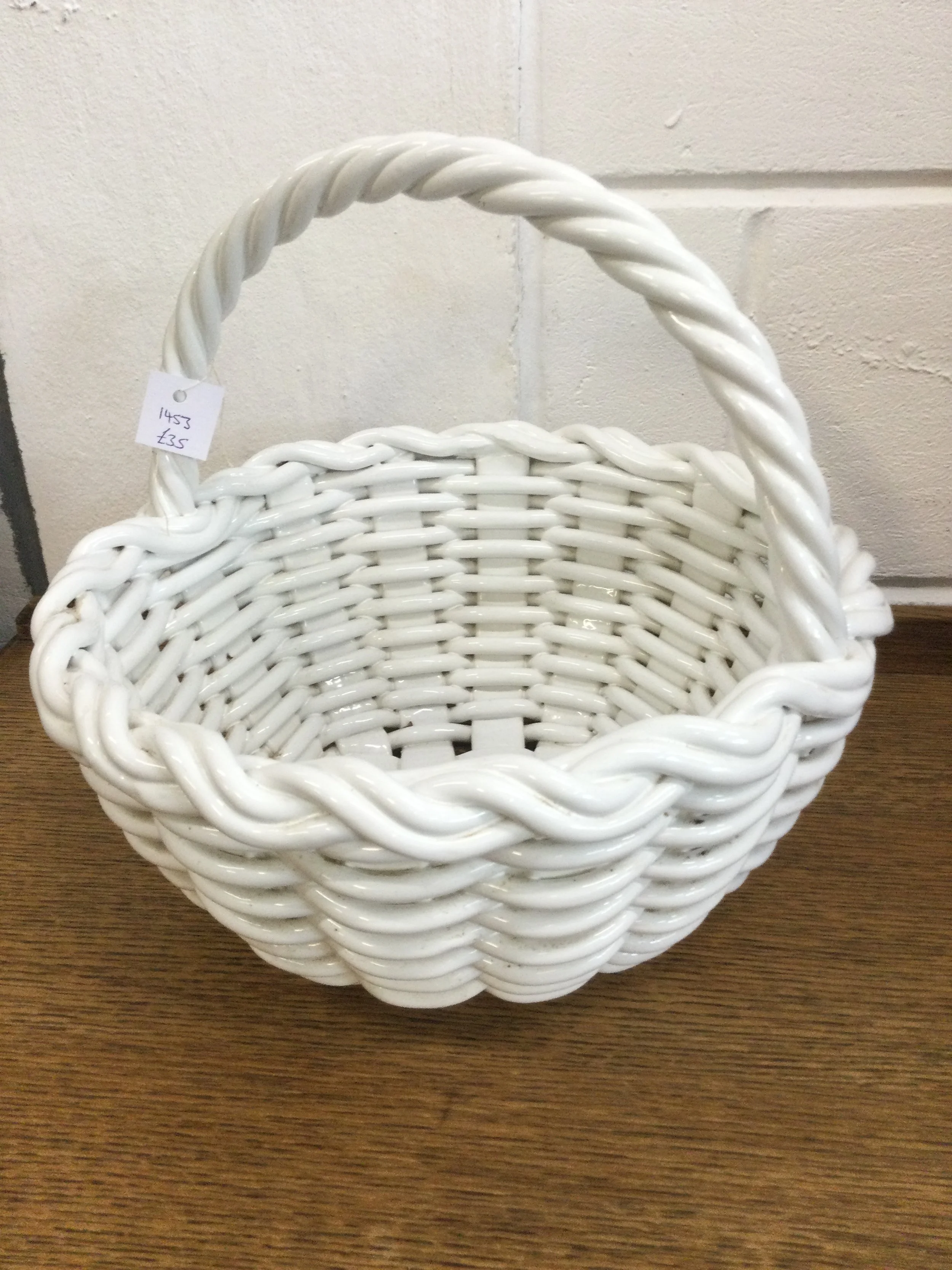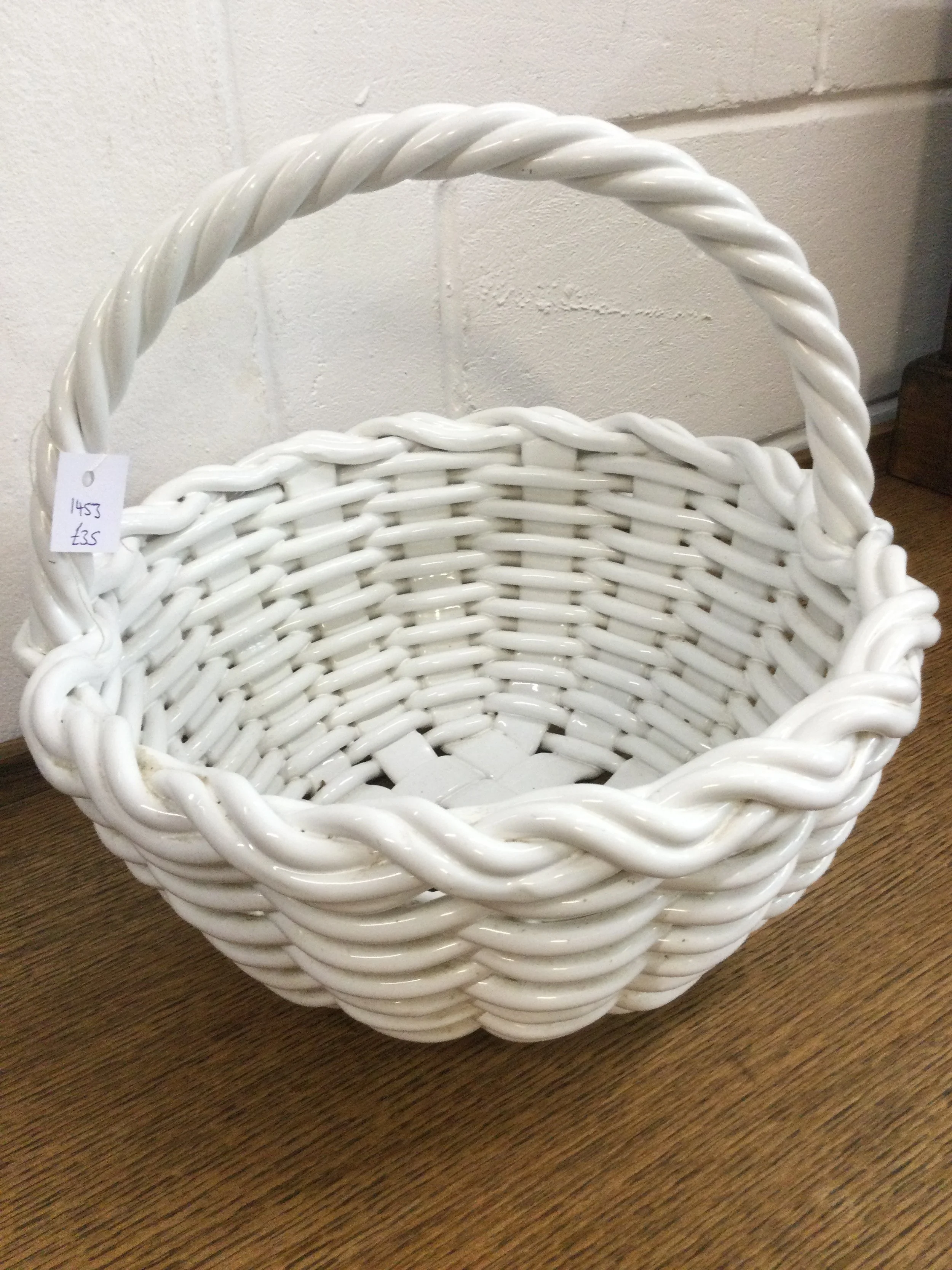 Vintage Large White Ceramic Decorative Basket
