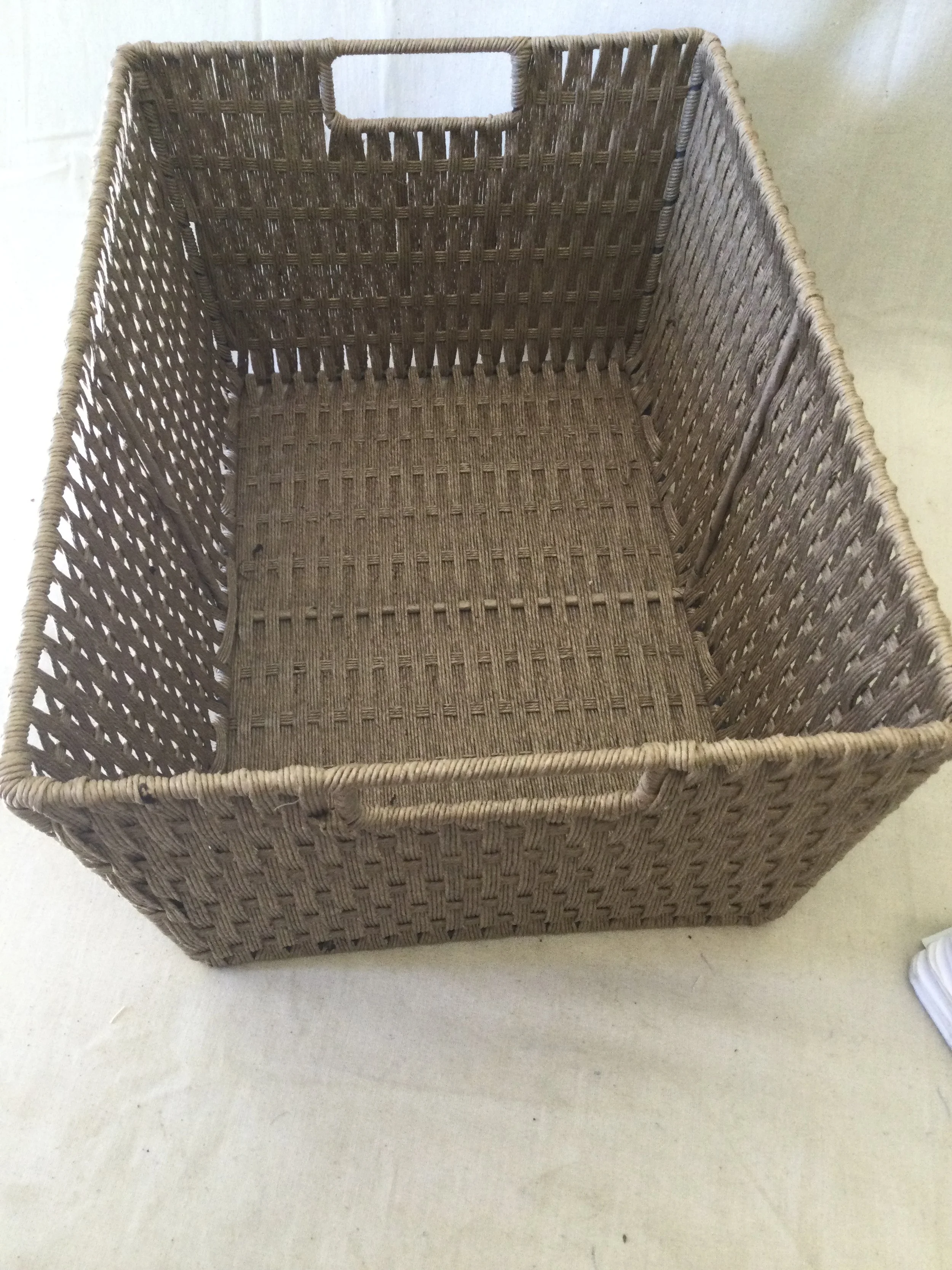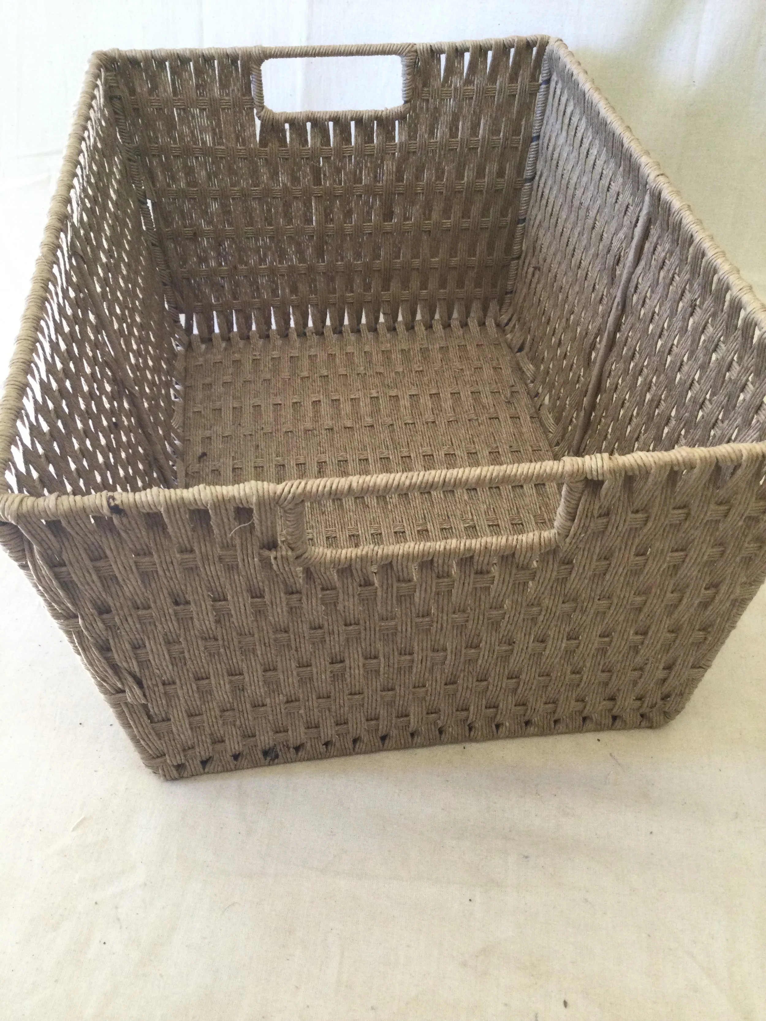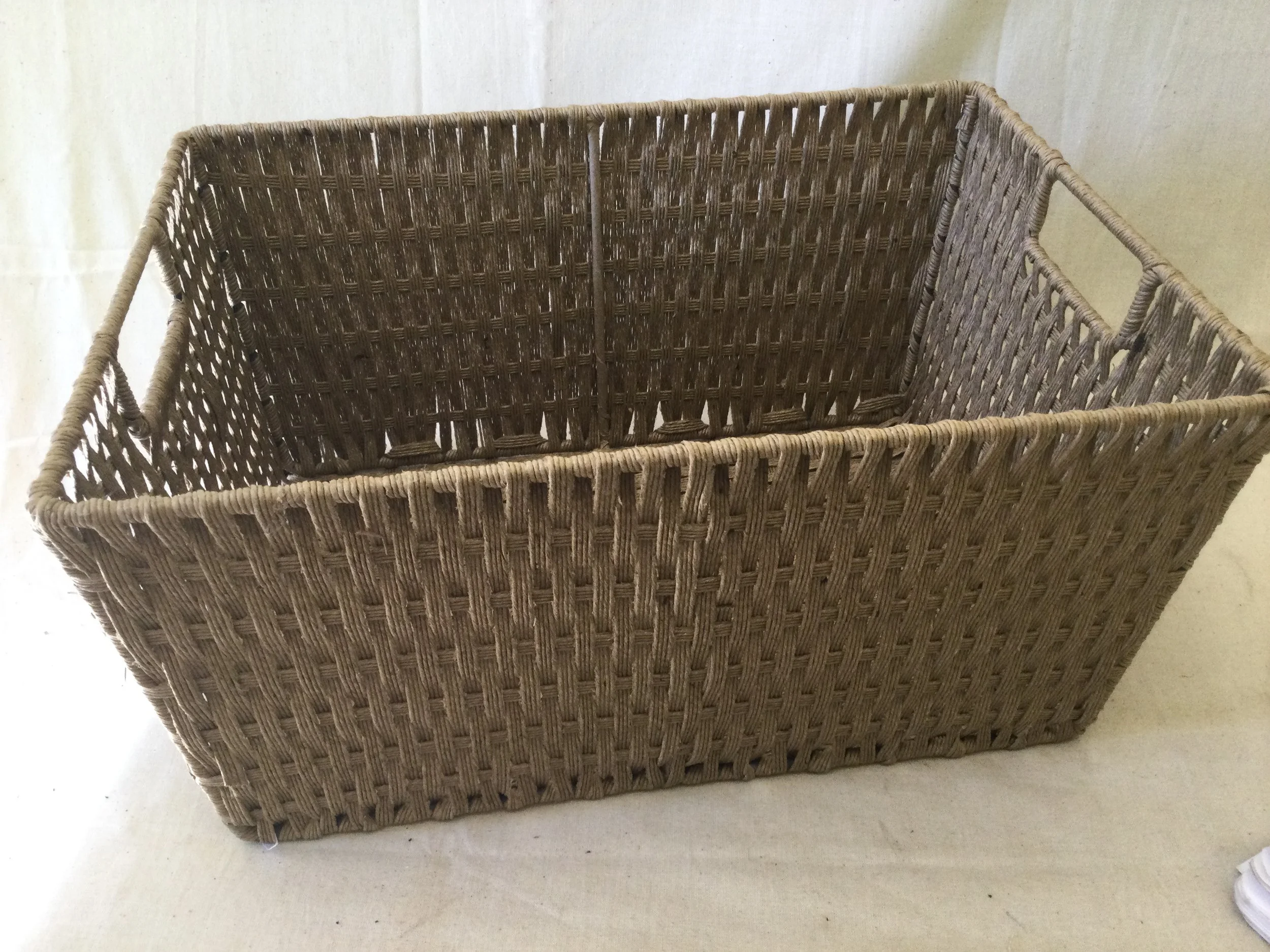 Online Home Shop navy blue and white star linen laundry basket with handles on either side. Could also be used for toy storage. It measures 49 cm tall x 37 cm diameter
